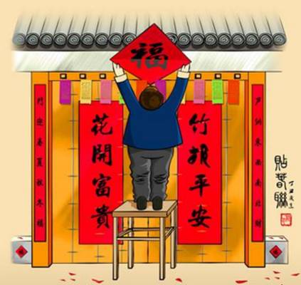 下聯:好詩吟唱,滿庭年味樂悠悠。
