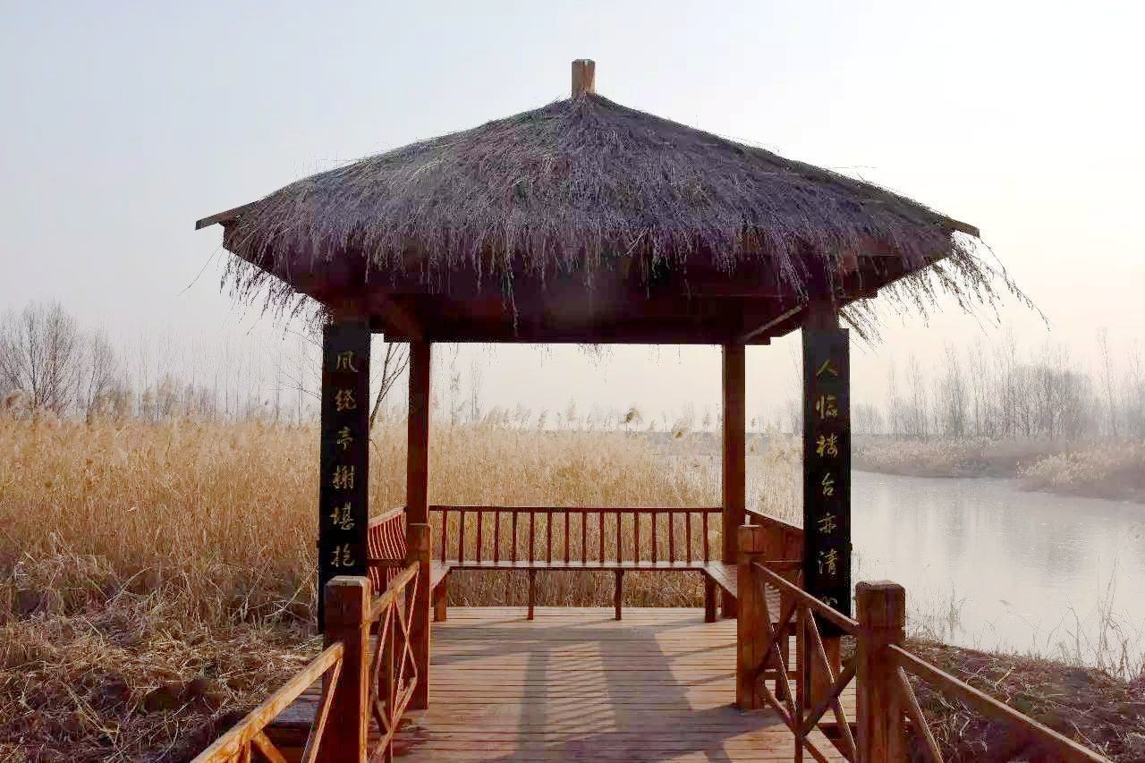 滕州微山湖濕地各個景點遍布著各式的亭台樓閣,楹聯文化內容豐富,有著深厚內涵和詩意,是濕地景區又一道別致的風景線。