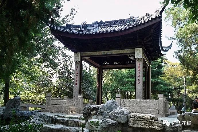 這幅對聯被鐫刻在滄浪亭的石柱上,這其中的縱情自然山水的曠達與閑適,在心口之間蕩漾開來、世俗之氣層層遠去。這對聯好不一般!細細查閱,這上聯原出自歐陽修《滄浪亭》中的詩句“清風明月本無價,可惜袛賣四萬錢”,巧妙地道出了園林自然景色的美好不可估量,也打趣園主四萬錢買園的雅事。下半句則出自園主蘇舜欽的詩作《過蘇州》中的“綠楊白鷺俱自得,近水遠山皆有情”。不僅讓我們感受到園主對園林景色的喜愛與得意之情,更表達出蘇舜欽曠達自適、寄情山水的胸懷與雅致。這副對聯歌景詠物、表情達意、更是詩出名篇;又記錄了兩位大家的深厚友誼,觀景、聞事、懷人,引人無限遐思。