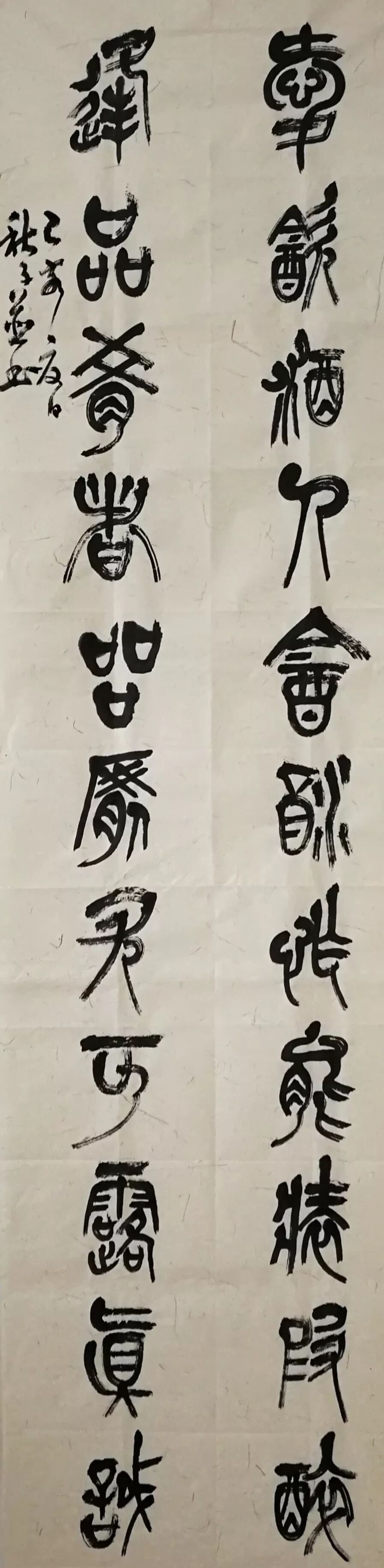 三邀二請,籌謀隻為完心事; 把盞推杯,醉意窺知酒中情。 ——何繼文 點評:能見作者心思,對仗須深加推敲。 險象環生,古來把酒鴻門宴; 才華橫溢,此去言歡鳳凰台。 ——劉曉晨 點評:上聯用典耳熟能詳,鳳凰台和飯局有何瓜葛評者不解。 不明單刀會,難曉客中客; 吃了霸王餐,方為人上人。 ——冰鼎 點評:妙。字麵明白如話,用典無形,後味無窮。 敬上坐人,上坐呼來千萬盞, 送先行客,先行喝去兩三杯。 ——何克林 點評:見酒而不見飯,可見飯局已成酒局也。 迎來貴客,魯酒開懷才半醉,舍得之間成氣候; 陪座佳人,齊歌握手又三杯,迷糊以後定乾坤。 ——佛曰花開 點評:有深度,個別字眼對仗巧妙,後兩分句有節奏雷同之嫌。 革命豈能請客吃飯? 人情總是練達文章。 ——楊繼勝 點評:熟語化用高妙,貌似遊離而能深扣主題。縱個別字眼平仄不協,為引用熟語故無妨。 親朋愛友,言行講規矩; 敬老尊賢,日月盈酒杯。 ——楊耀景 點評:此飯局溫馨動人,不涉局外之事。 愛飲酒人,飲酒怎能裝假醉? 逢品肴者,品肴尤可露真誠。 ——秋子 點評:此亦溫情飯局,與他無涉,能見人間暖意。 秋子老師自書飯局聯 民以食為天,因謀求作局; 官能廉律己,故才德成名。 ——顏剛強 點評:議論恰當,能見思考,然主題隱藏過深。 飯桌深藏世界,能知況味? 酒杯浮動乾坤,可品玄機? ——獨吟天下 點評:一飯一酒,一深一浮,能見深意。 一局鴻門,喝醉劉邦,逐鹿中原競天下; 千杯美酒,灌高李白,吟詩平野傲人間! ——陳夢石 點評:第二句俗語入對,甚妙,不過有合掌之嫌!劉邦醉否? 舉酒杯,酒杯斟滿人間情。 佳菜肴,菜肴美味友誼宴。 ——李煥新 點評:上下聯首句俱平結,收句尾字上仄下平,須熟悉聯律。 鴻門宴,亞父徒急眼。 牡丹亭,貴妃獨傷情。 ——丁廣銘 點評:字麵對仗尚好,牡丹亭典可涉主題?二結句平仄失替。 設宴邀朋,形形色色意難猜,先入座; 把杯敬酒,熱熱親親心可測,再斟酌。 ——洮河浪子 點評:可見飯局之苦,個別對仗不穩。 設宴托人難請客,耗時費力; 積德賜善易交朋,舉手投足。 ——杜向輝 點評:對仗工穩,上聯清晰,下聯遊離。 叫兄弟,幾成緣,百味盤中分貴賤。 稱酒薰,多偽醉,千盅肚裏有坤乾。 ——羅武第 點評:能見思考,不推薦“坤乾”之用法。 三五摯友,聚在蘭亭,賞山珍共品詩書墨韻。 九州親朋,設此棋局,借杯酒但求利祿功名。 ——牟國竑 點評:對仗平仄俱到位,有點繁瑣。 宴開鴻門時劍斫玉鬥,逃席焉能呼豎子? 酒煮青梅日箸落驚雷,貪杯未可論英雄! ——東方曉 點評:化用兩典,緊扣主題,結句議論得法,字眼個別平仄不協。 海錯珍饈東道情,情也局也? 瓊漿玉液貴賓福,福兮禍兮? ——一介凡夫 點評:佳作,結的尤妙。 萬宴一桌,都為聚會; 千心百貌,各有保留。 ——彭春楓 點評:簡短有力,轉結得法,對仗巧妙。好聯! 宴非好宴,留神像攝鴻門宴; 心若初心,快意杯斟叱吒心! ——王冰 點評:對比得體,下聯不及上聯明快流暢。 主賓調段子,酒助香,饈添味; 偏席捧排場,多陪笑,少發言。 ——無言 點評:刻畫生動,平白而見高妙,深得飯局之三昧耶。佳製! 口說無妨,便飯豈能存惡意; 酒行微醉,欲言又止露真心。 ——趙禧勇 點評:此乃有求於人的飯局素描。 宴財神,邀張九,懷中有影; 食狗肉,醉王八,笑裏藏刀。 注:張九,戲劇三世仇裏的管家 ——雪鬆 點評:刀光劍影,請客者有失厚道! 一飯慎思量,客主無非做謎局; 千杯莫冒失,觥籌多半醉癡人。 ——王文婧 點評:兩起句甚好,下聯亦見性情。然上結議論武斷,三仄收尾亦可斟酌。