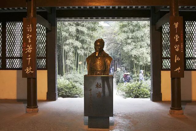 清人嚴嶽蓮撰聯,生動道出成都草堂在中國文人心中的“聖地”地位——即使茅屋破舊、草堂逼仄,但因著杜甫的“詩史”,在中國文化史上,卻像是那座曆經戰火而獨存的著名宮殿“魯靈光殿”一樣光彩照人。
