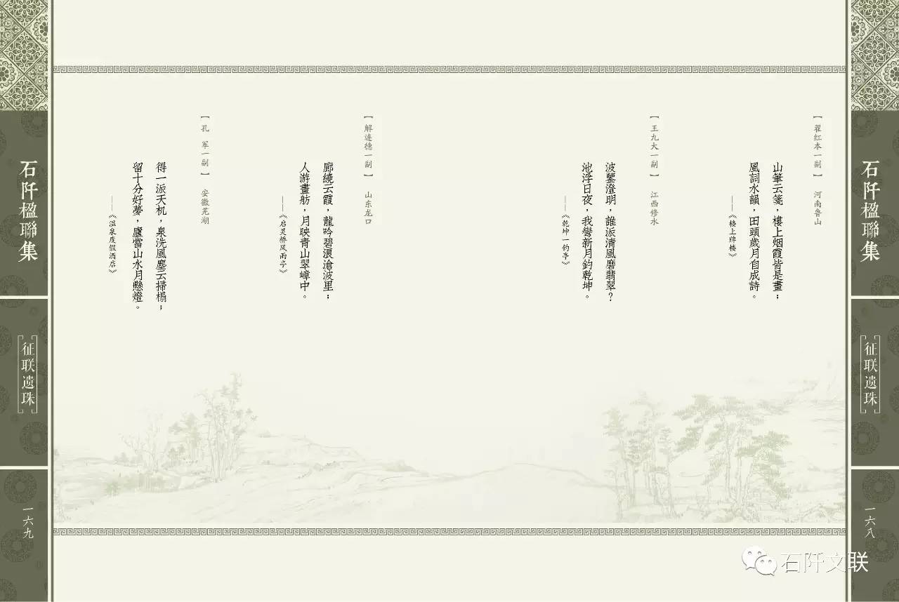 讀者諸君,欣賞一冊具有內涵美的集句聯,從中尋求到一幅適合並喜愛的作品,感受作品中韻律的美,思維的美,文采的美,內涵的美,盛景的美,不僅有身臨其境之象,且有瑤想瓊思之意。化閱讀為暢想,何樂而不為?