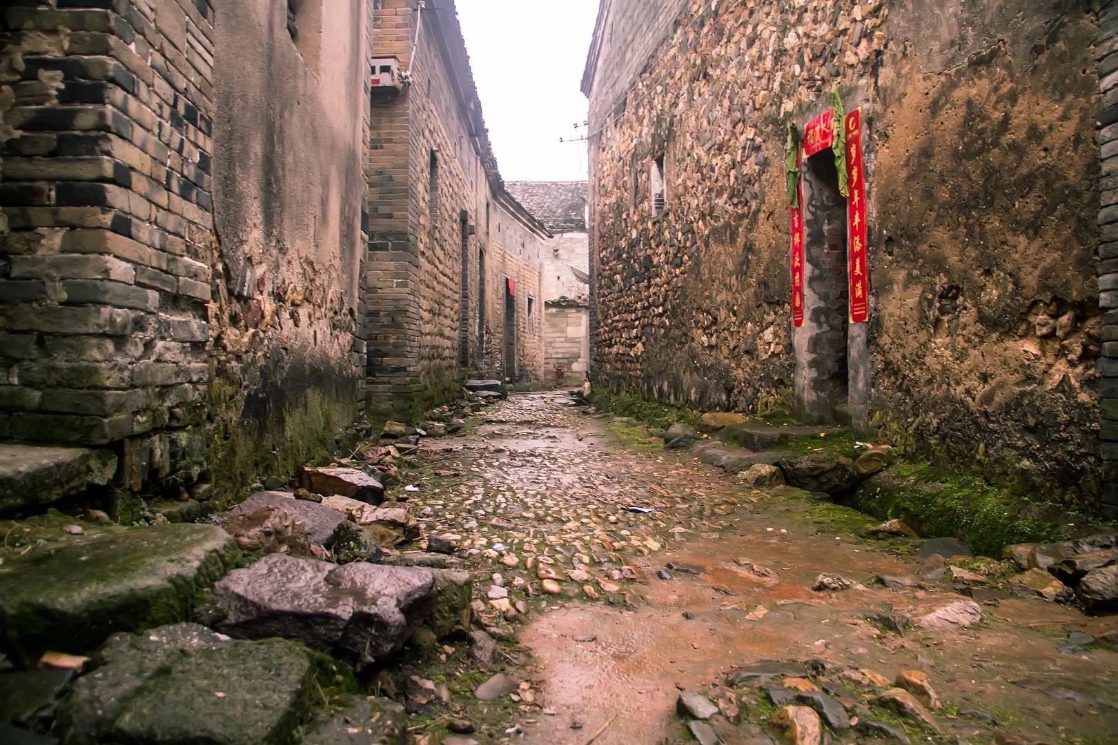 村裏的路,石板鵝卵石鋪,縱橫交錯,徜徉其中,猶入迷宮。在這冬季,沂溪村的路上、石板上、牆角處,隨處可見青苔。多條僻路,長滿蕨草等雜草,有的雜草還長上了牆,長上了瓦,村中人行稀少,可想而知。
