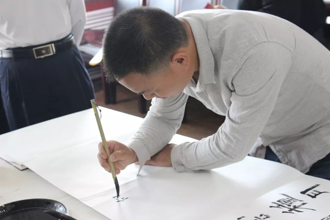 曲樂助興後,大家圍攏到早已備好的畫案前,鋪宣研磨,提筆揮毫。先後二十幾位書法家圍繞“中秋雅集”這個主題,真草隸篆,各展所長,在聽覺盛宴後又為大家奉上一場視覺盛宴。